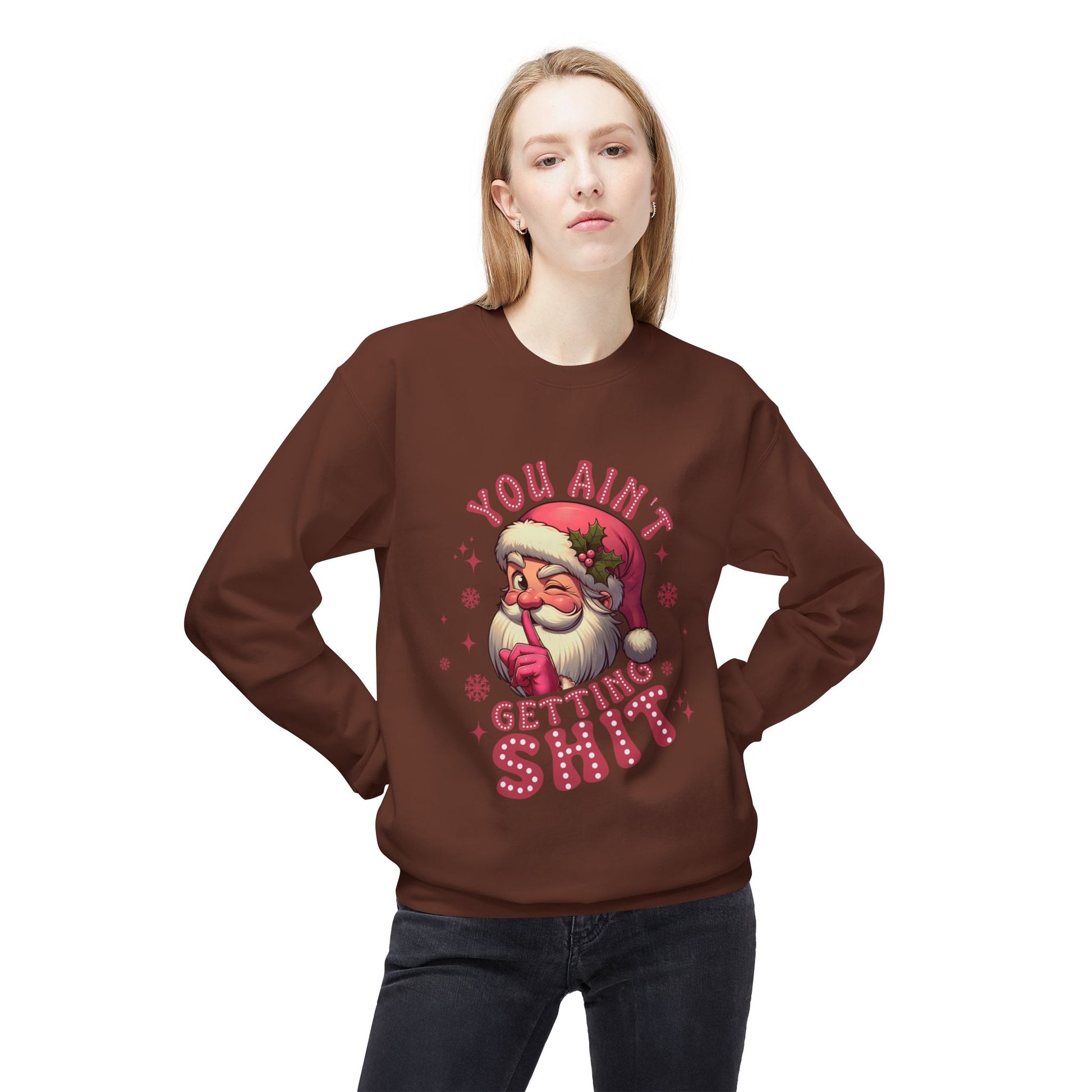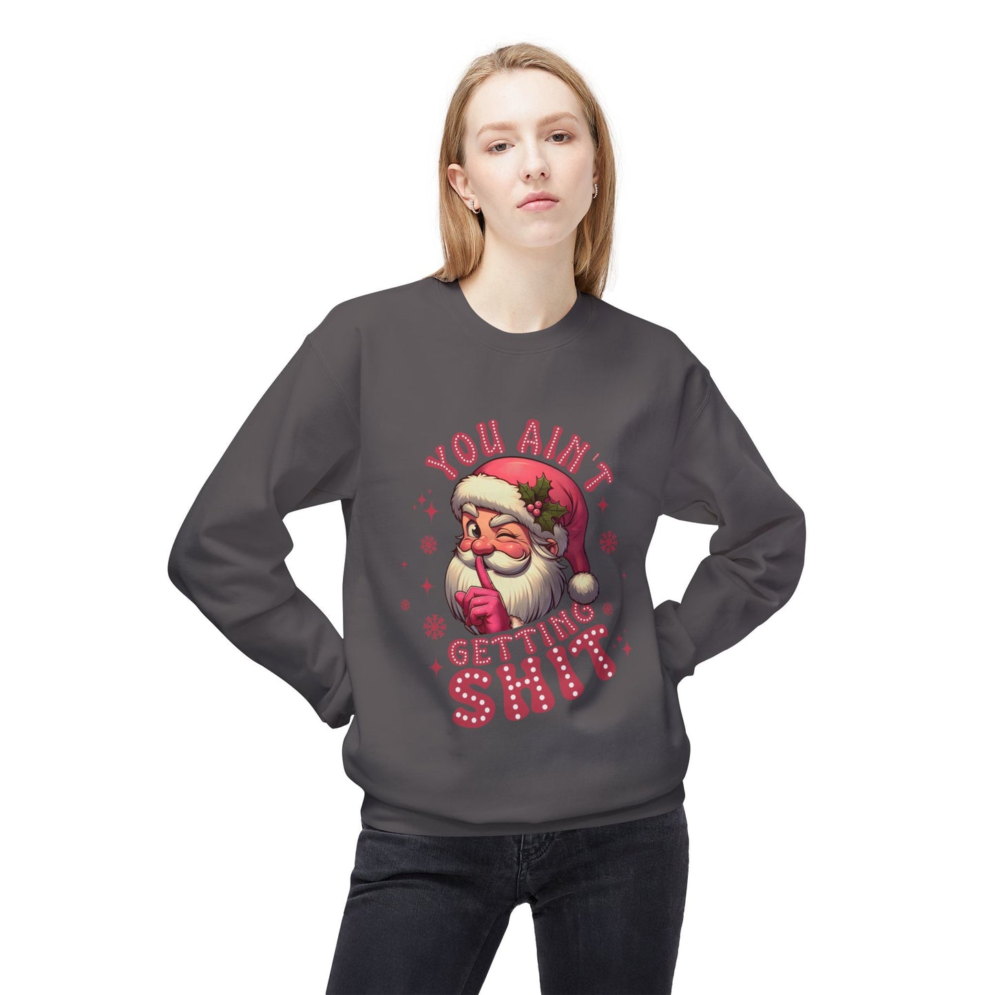 Funny Santa Sweatshirt - 'You Ain't Getting Shit' - Unisex Holiday Crewneck