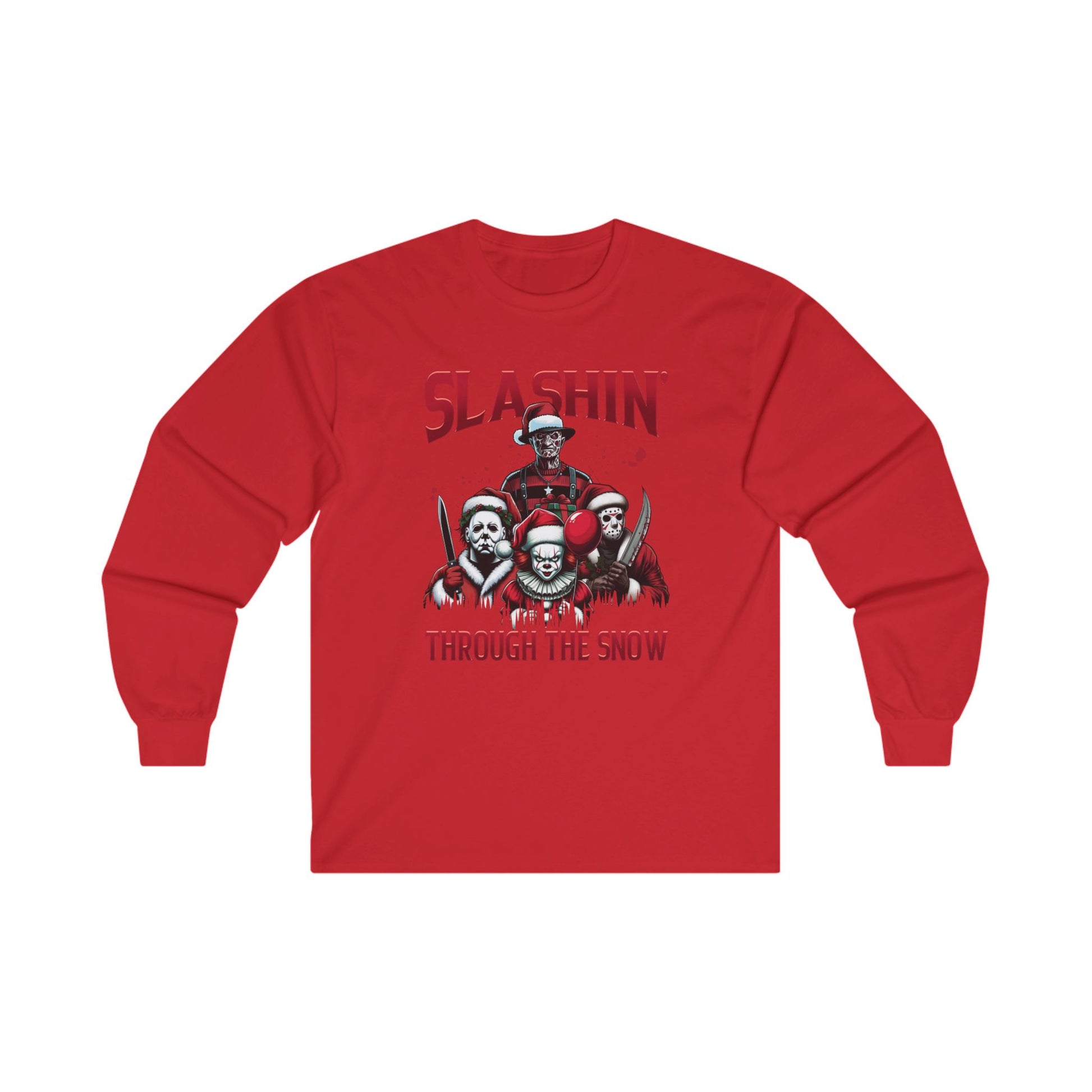 Unisex Long Sleeve Tee - SLASHIN' Through the Snow Graphic T-Shirt for Horror Fans